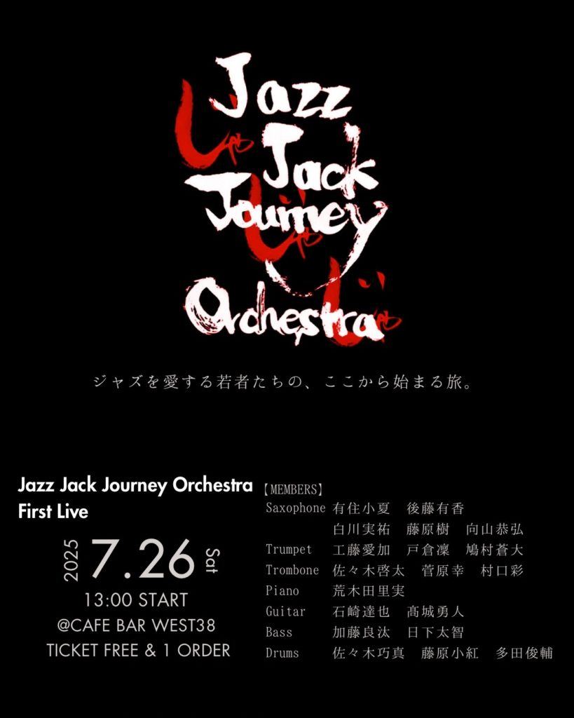 【7/26(土)13時~】Jazz Jack Journey Orchestra 投稿者:Yui Kitada 投稿公開日:2025年7月19日 投稿カテゴリー:イベント Jazz Jack Journey OrchestraSaxophone 有住小夏 後藤有香 白川実祐 藤原樹 向山恭弘Trumpet 戸倉凜 鳩村蒼大Trombone 佐々木啓太 村口彩Piano 荒木田里実Guitar 石崎達也 髙城勇人Bass 加藤良汰 日下太智Drums 佐々木巧真 藤原小紅 多田俊輔※鑑賞無料※一品以上のご注文が必要です ▼ イベント情報カレンダーはこちらhttps://akiyoshi-jazz.com/event/ その他の記事を読む 前の投稿【7/27(日)13時~】Joe Li & デイリー山崎 & The Friends 次の投稿【7/26(土)19時~】馬場葉子~真夏の夜のJazz おすすめ 【2/1~14】バレンタインフェア開催! 2023年2月1日 【2/14(金)19時~】柿崎幸史トリオfeat.宮崎航大~バレンタインジャズライブ2025 2025年2月6日 【5/12(日)13時~】後藤匡徳trio 2024年5月4日