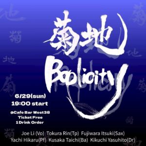 【ライブ】菊地Boplicity イベント詳細 日付: 2025年6月29日 7:00 PM – 9:00 PM 菊地康仁(Dr) Joe Li(Vo) 谷地輝(Pf) 藤原樹(Sax) 戸倉凛(Tp) 日下太智(Ba) ※鑑賞無料 ※一品以上のご注文が必要です